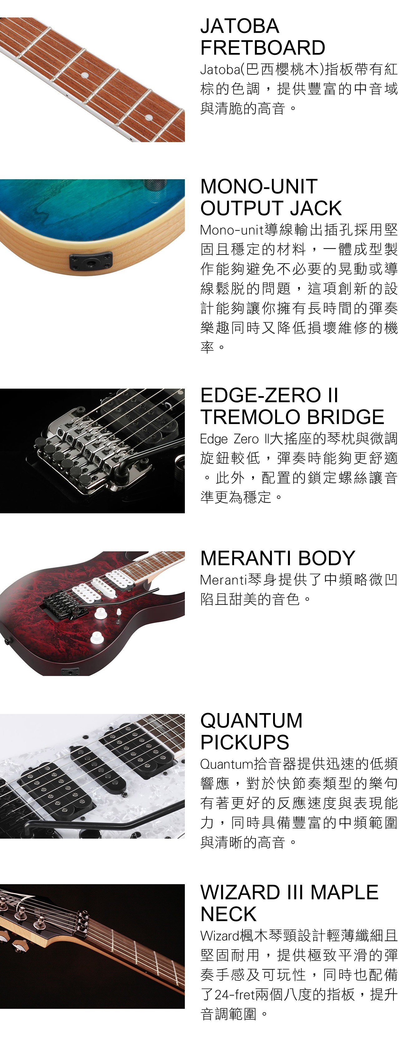● Wizard III 楓木琴頸纖薄平坦設計,堅固耐用,手感優異;24 格指板提供更寬廣音域