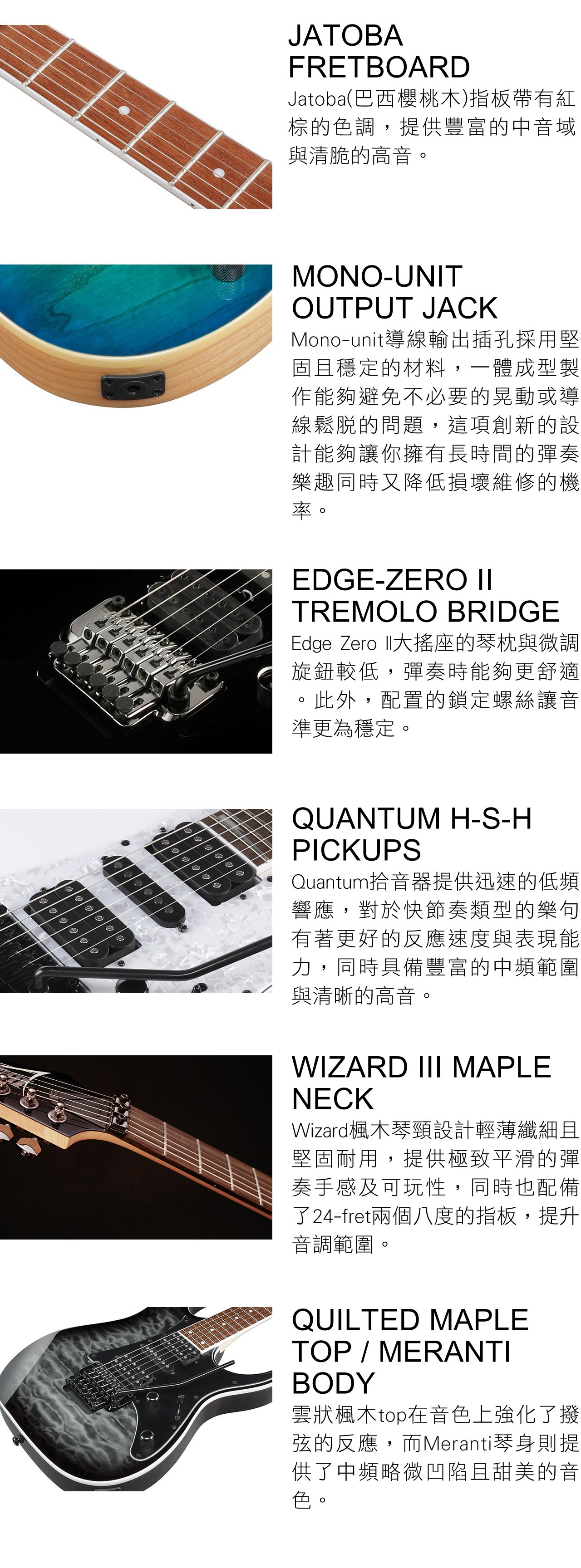 ● 琴頸段和琴橋段Quantum雙線圈、中間段Quantum單線圈拾音器系統