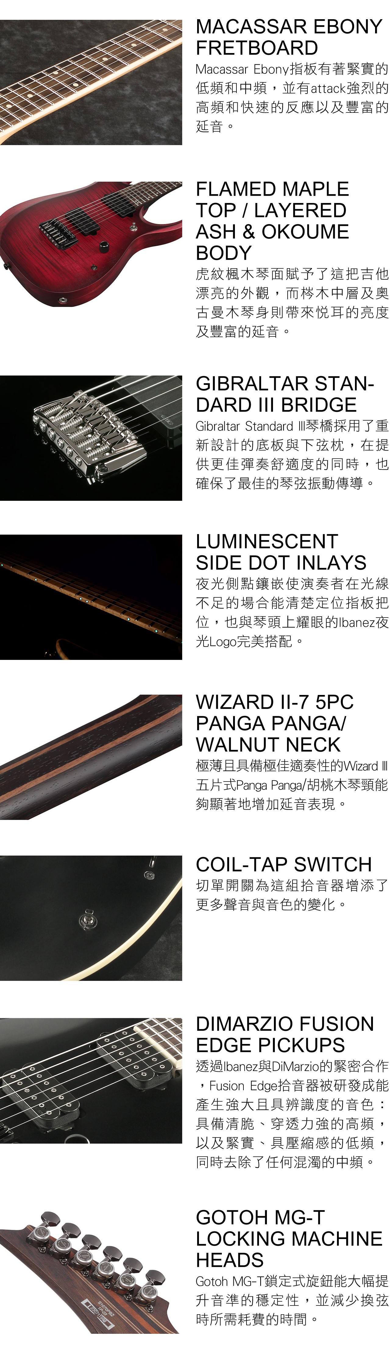 ● 琴頸段和琴橋段DiMarzio Fusion Edge 7雙線圈拾音器系統