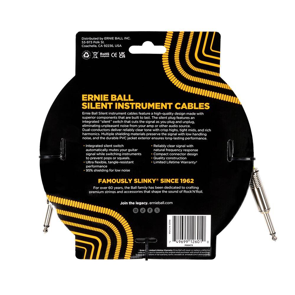 Ernie Ball Classic Silent Instrument Cable Straight/Straight 20ft - Black 6473 樂器導線