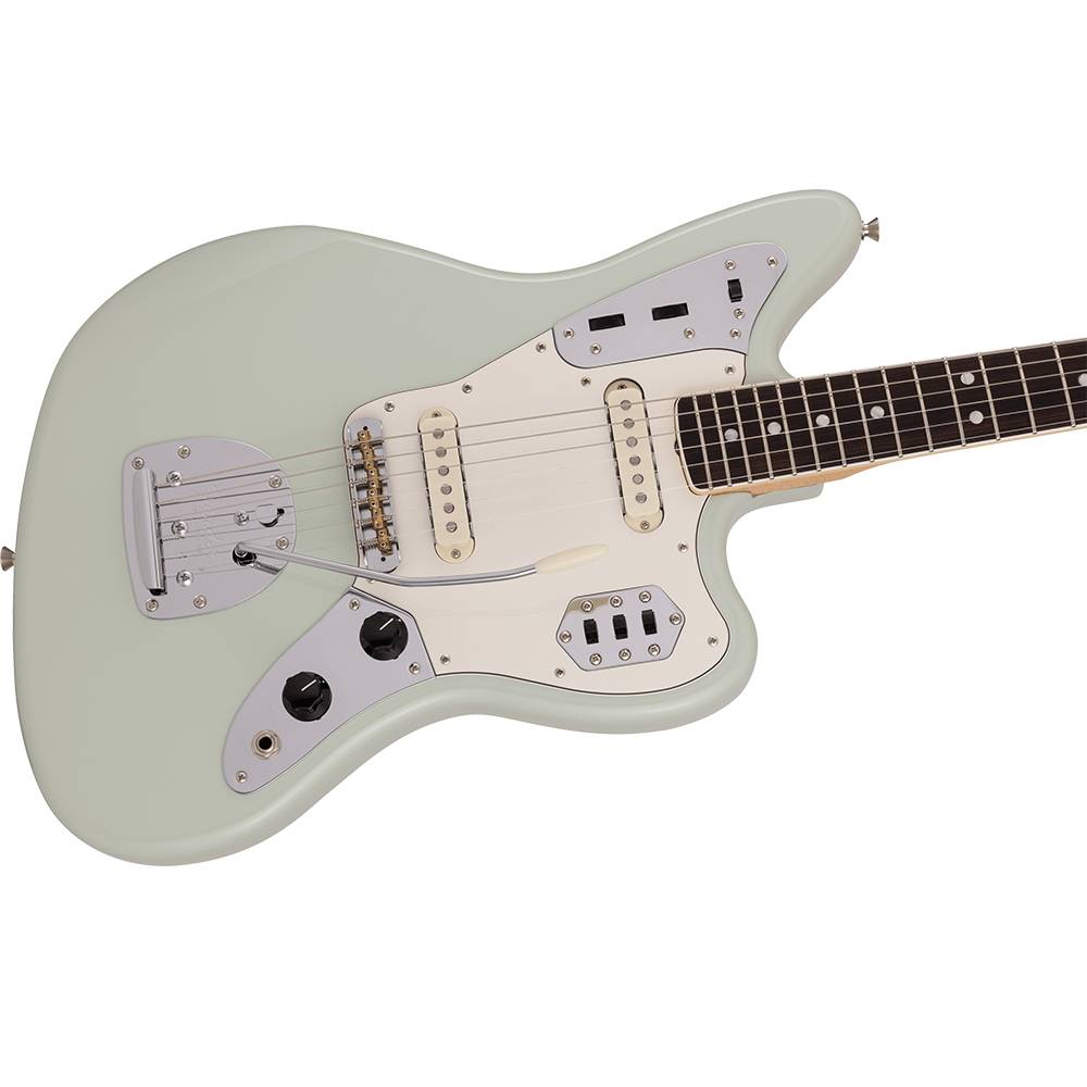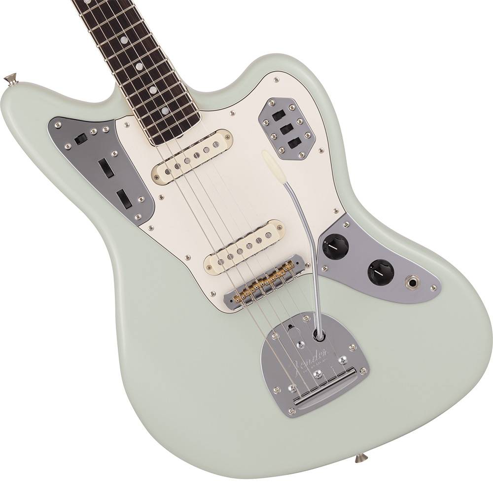 在音色方面,結合黃銅螺旋弦枕與專為本型號開發的原創拾音器,不僅保有 Jaguar 特有的銳利清音,同時帶有溫暖厚度;即使加上破音效果,也能維持清晰輪廓,完整重現她極具特色的吉他音色。