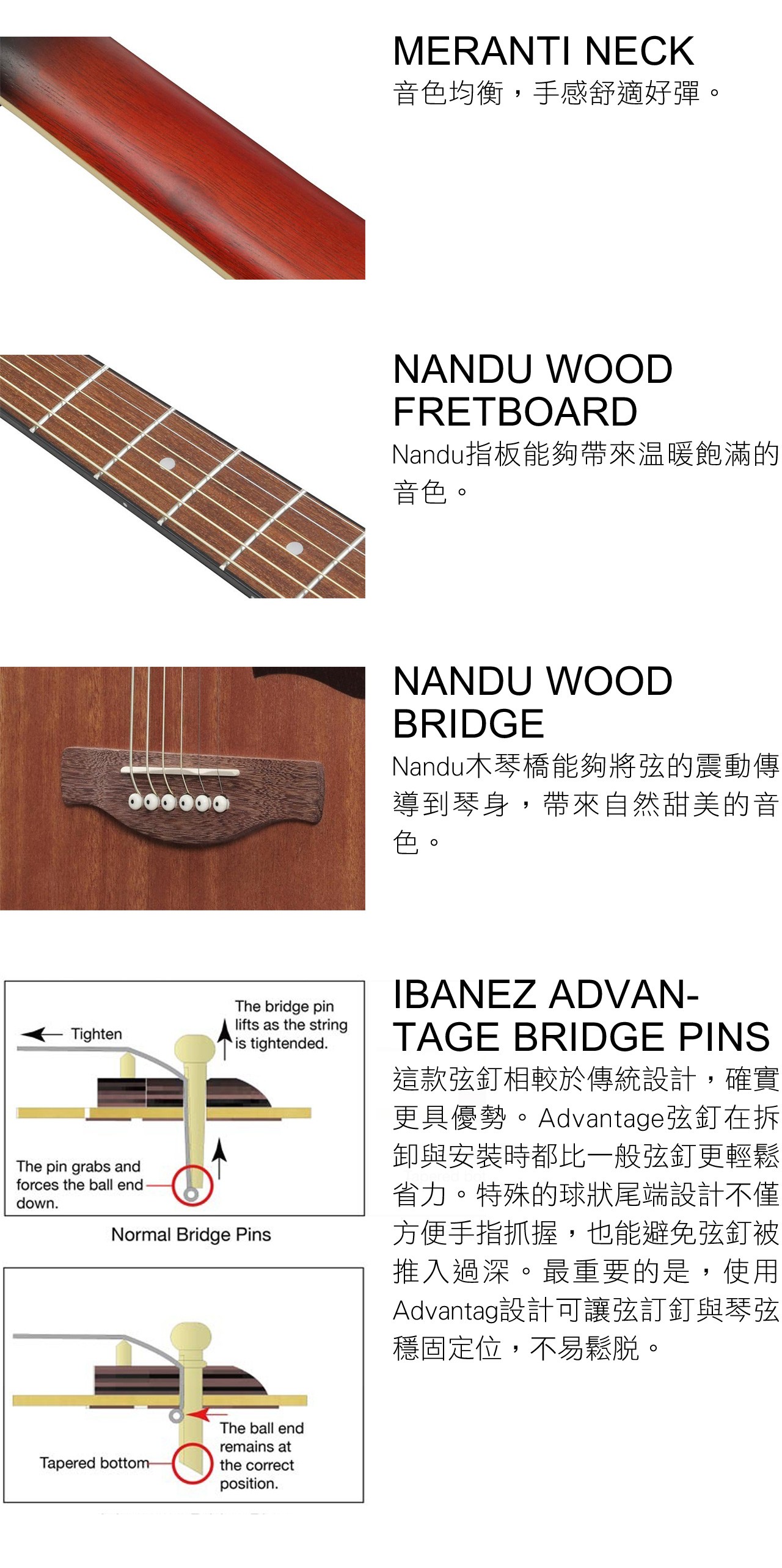 ● 輕鬆拆卸及安裝的Advantage改良式琴橋弦釘