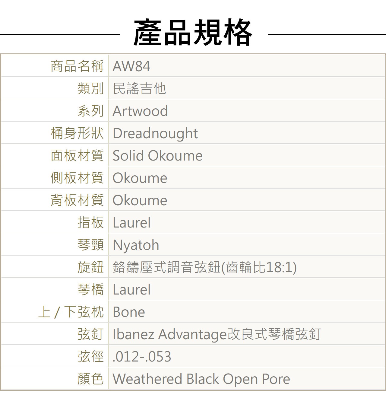 ● ARTWOOD Traditional Acoustic Electric系列琴款