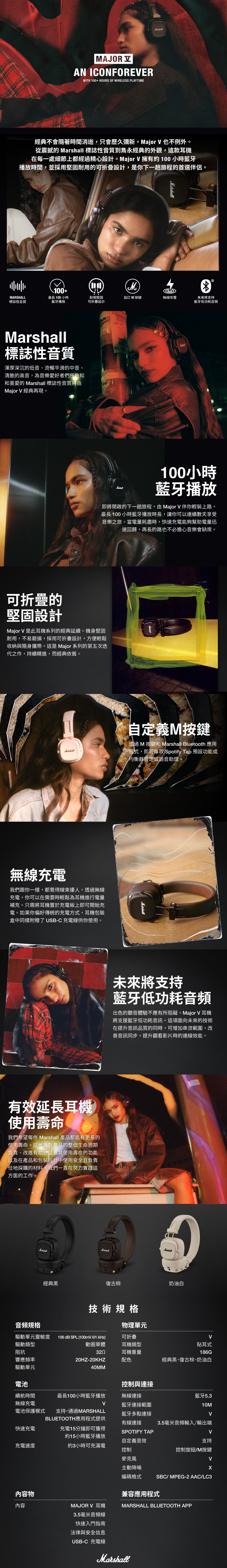 Marshall Major V 藍牙耳罩式耳機 (共三色)