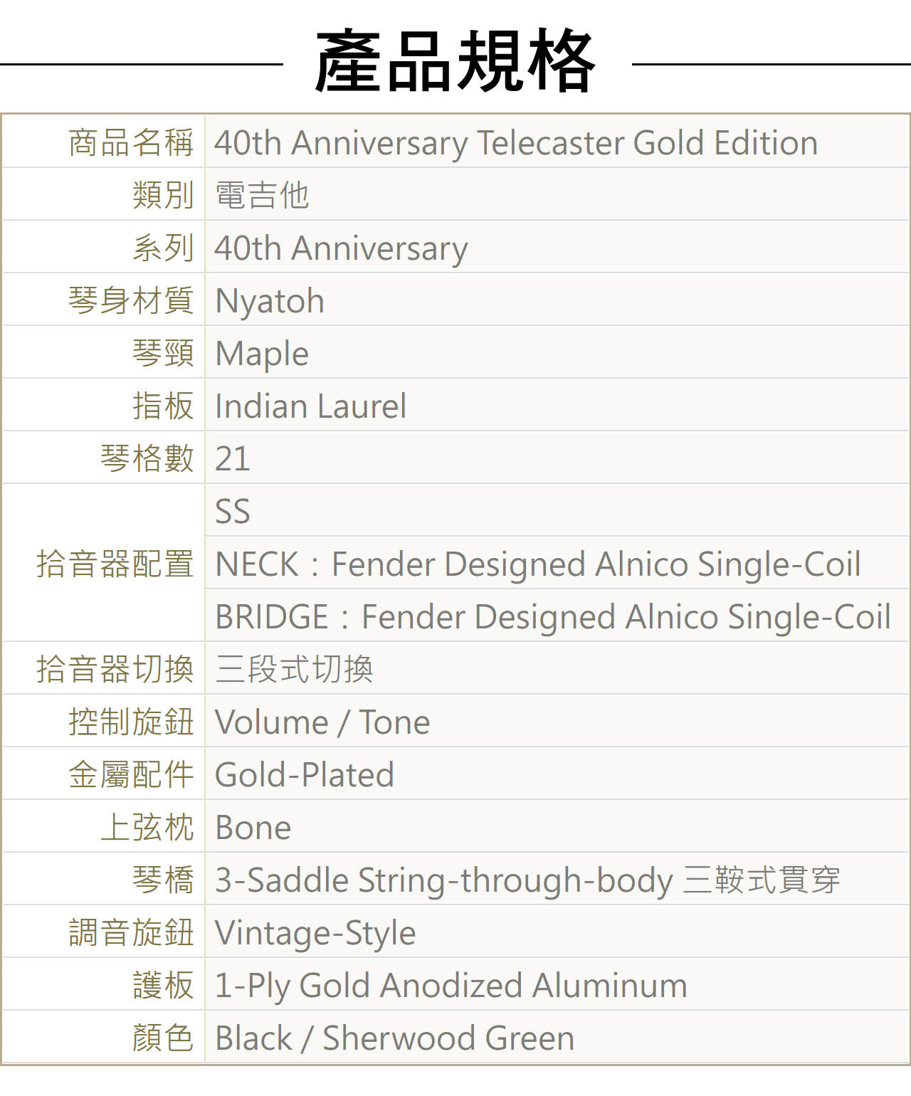 Squier 40th Anniversary Telecaster Gold Edition 電吉他