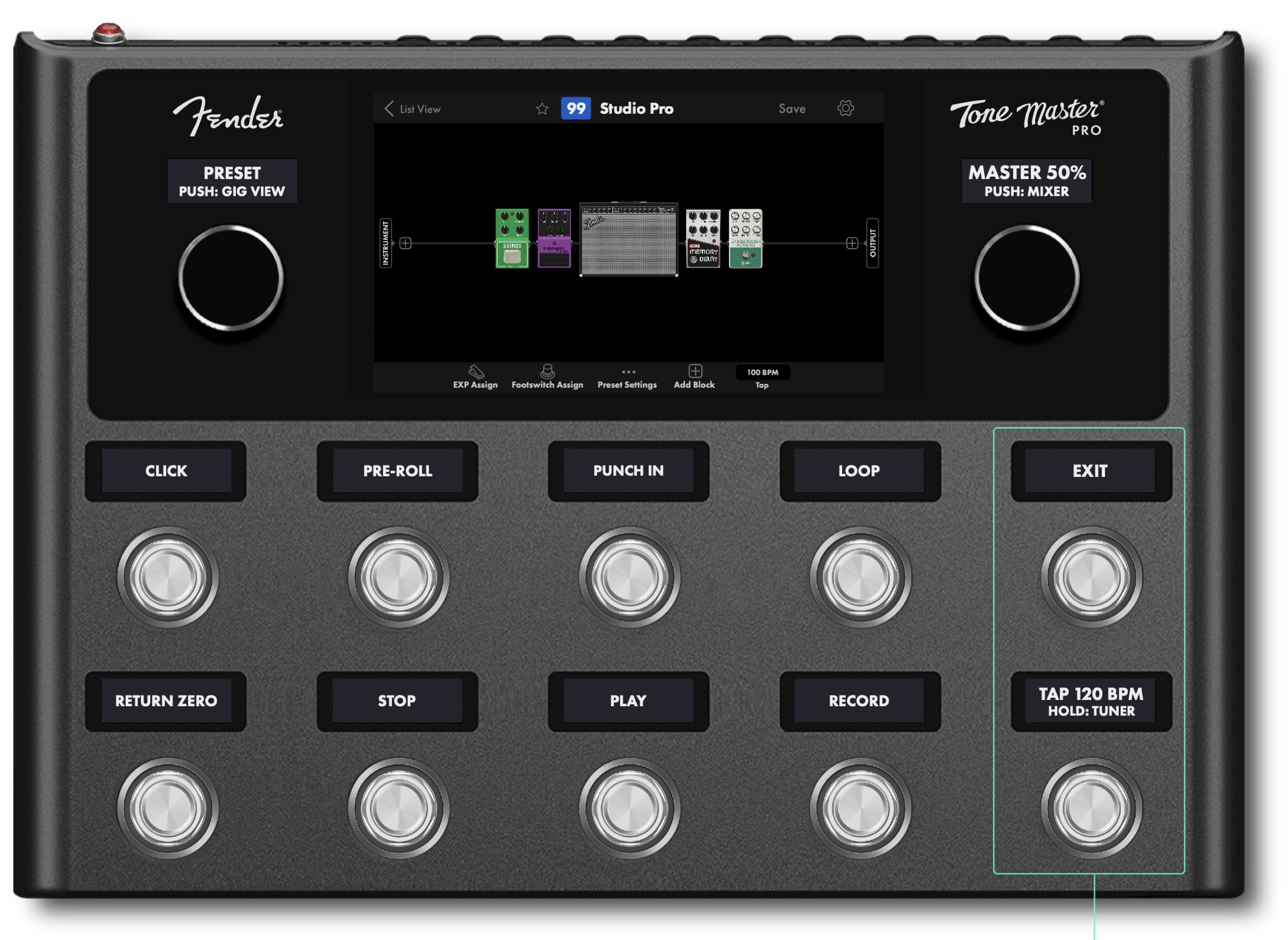 此次更新搭配 Fender Studio Pro(Mac 與 Windows 平台的數位錄音軟體)使用,Tone Master Pro 不僅是一台音色處理設備,也能成為免手操作的 DAW 控制器,讓演奏與錄音更加直覺與流暢。