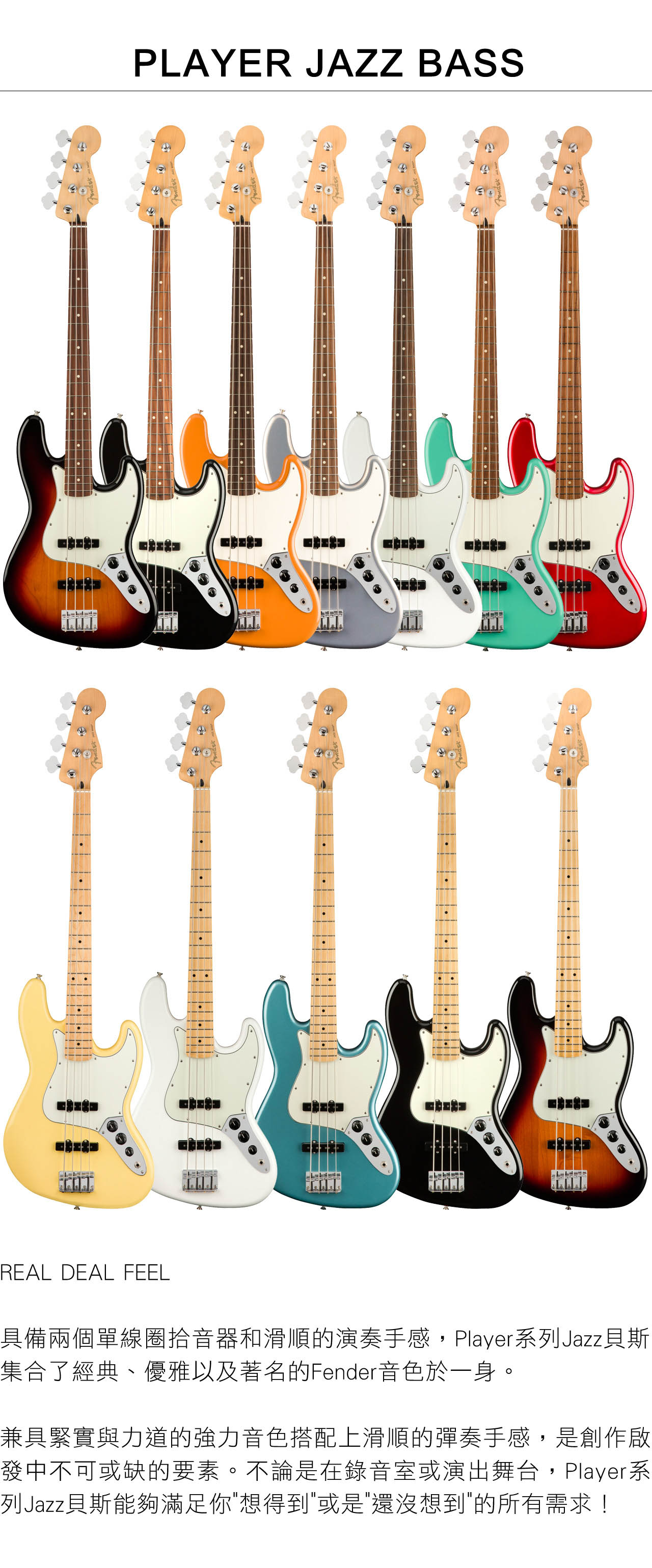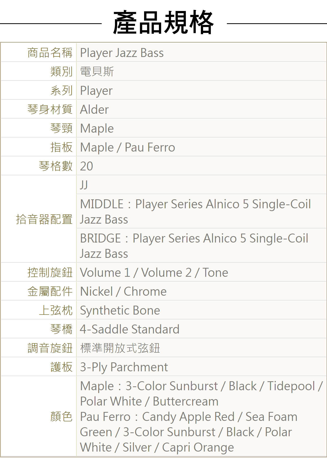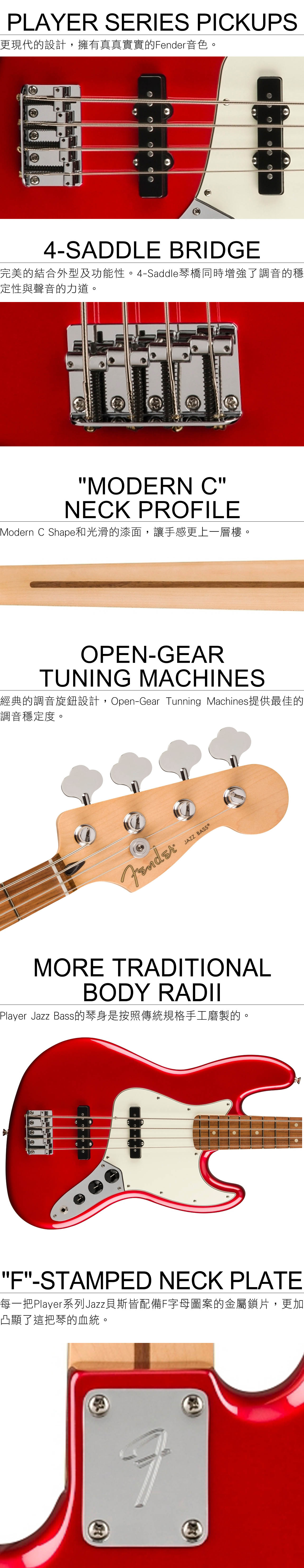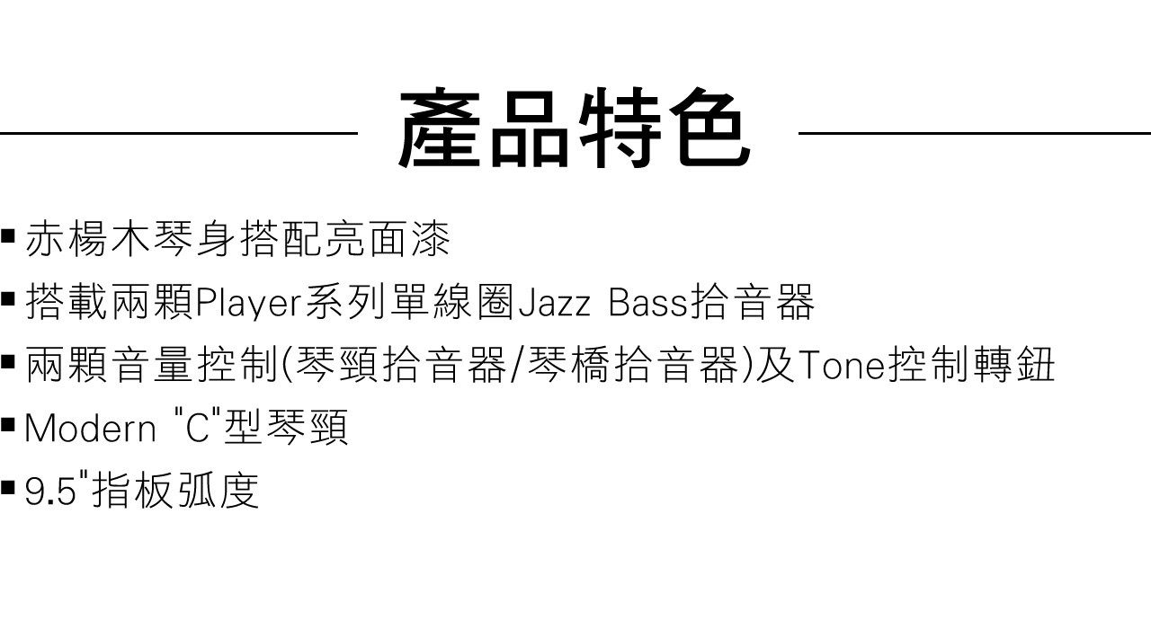 ● 搭載兩顆Player系列單線圈Jazz Bass拾音器