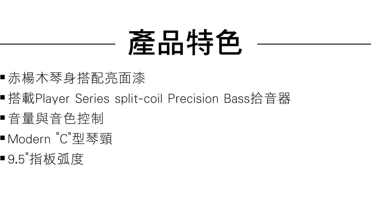 ● 搭載Player Series split-coil Precision Bass拾音器